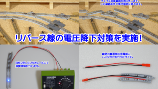 鉄道模型、レイアウト ◆鉄道模型、外回りリバース線の電圧降下対策を実施! ポイントレールの分岐先に補助の給電箇所を設けて電圧降下に対応いたします。昨日(2021.04.05.)の記事◆鉄道模型、固定式レイアウト、電圧降下対策の為、車両を片付ける…で、記しましたとおり、私の固定式レイアウトの外回りリバース線で発生し...続きを読む 2021.04.06 鉄道模型、レイアウト