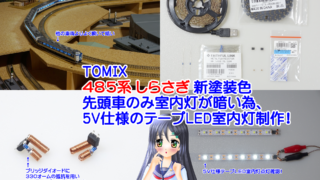 鉄道模型、室内灯組込 ◆鉄道模型、TOMIX 485系 しらさぎ 新塗装色、先頭車のみ室内灯が暗い為、5V仕様のテープLED室内灯制作! 5V仕様のテープLEDで問題が解決できると良いのですが…昨日(2021.10.15.)の記事◆鉄道模型、メンテナンスに車両が応えてくれない…TOMIX 485系 しらさぎ 新塗装色…の動画を投稿しました!で、TOMIXさんの「485系 しら...続きを読む 2021.10.19 鉄道模型、室内灯組込