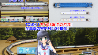 鉄道模型、室内灯組込 ◆鉄道模型、TOMIX、「キハ58系 たかやま」全車両の室内灯5V仕様化! グリーン車が電球色LEDと白色LEDになった為、編成全体としてカラフルな灯りとなりました。写真は、TOMIXさんの「キハ58系 たかやま(品番:92202)」です。昨日(2022.03.01.)の記事、◆鉄道模型、TOMIX、「キハ58系 ...続きを読む 2022.03.02 鉄道模型、室内灯組込