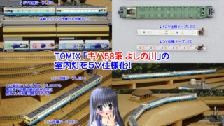 鉄道模型、室内灯組込 ◆鉄道模型、TOMIX、「キハ58系 よしの川」の室内灯を5V仕様化! キハ58系の5V仕様化も慣れてきましたが・・・写真は、TOMIXさんの「キハ58系 よしの川(品番:92063)」です。この度は、この車両の自作室内灯を5V仕様化いたしました。この車両は「砂丘」や「たかやま」のようなグリーン車が無い為、全て...続きを読む 2022.03.05 鉄道模型、室内灯組込