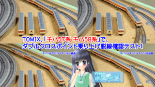 鉄道模型、全般記事 ◆鉄道模型、TOMIX、「キハ57系 キハ58系」で、ダブルクロスポイント乗り上げ脱線確認テスト! 同じような車両なのに、脱線する車両と脱線しない車両があるのは悩ましい…昨日(2022.03.18.)の記事、◆鉄道模型、「脱線率が高いのはどっち?」…の動画を投稿しました!で、ポイントレールでの脱線率をテーマにした動画を投稿いたしました。【...続きを読む 2022.03.19 鉄道模型、全般記事