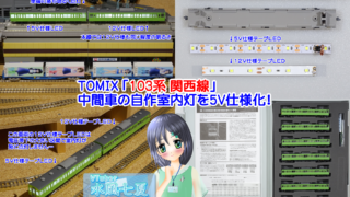 鉄道模型、室内灯組込 ◆鉄道模型、TOMIX、「103系 関西線」中間車の自作室内灯を5V仕様化! 5V仕様テープLEDは、両端ギリギリまで窓のある車両で特に威力を発揮いたします!TOMIXさんの「103系 関西線(品番:98210/98212/9310)」の中間車の自作室内灯を5V仕様化いたしております。この車両も、私の固定式レイアウト...続きを読む 2022.07.13 鉄道模型、室内灯組込