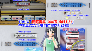 鉄道模型、室内灯組込 ◆鉄道模型、TOMIX、「長野電鉄1000系 ゆけむり」中間車の5V仕様自作室内灯改善! 中間車も先頭車と同じ要領で自作室内灯にLEDを追加!写真はTOMIXさんの「長野電鉄1000系 ゆけむり(品番:92522)」です。昨日(2022.09.13.)の記事、◆鉄道模型、TOMIX、「長野電鉄1000系 ゆけむり」先頭車の5V仕...続きを読む 2022.09.14 鉄道模型、室内灯組込
