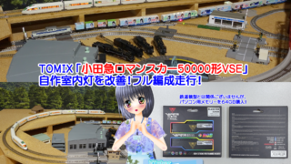 鉄道模型、全般記事 ◆鉄道模型、TOMIX、「小田急ロマンスカー50000形VSE」自作室内灯を改善!フル編成走行! 動力車の室内灯改善後、編成全体を撮影していなかったので…写真は、TOMIXさんの「小田急ロマンスカー50000形VSE(品番:92754)」の動力車です。先日(2023.03.29.)の記事、◆鉄道模型、TOMIX、「小田急ロマンスカー50...続きを読む 2023.04.01 鉄道模型、全般記事