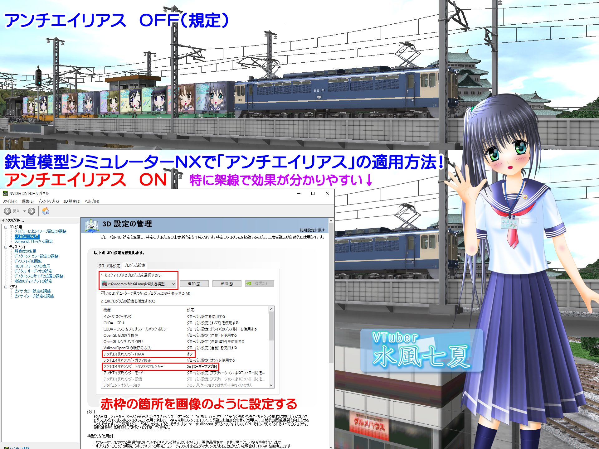 「鉄道模型シミュレーターNX」で、アンチエイリアスを適用する方法を紹介いたします。